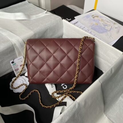 Chanel AS5011 Flap bag Shiny Lambskin Imitation Pearls & Gold-Tone Metal Wine Red
