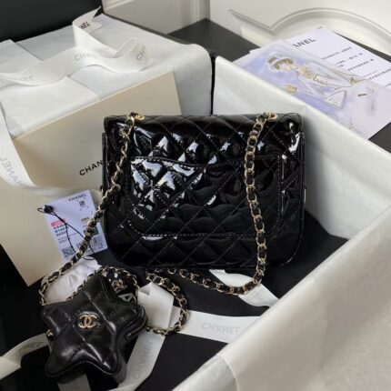Chanel AS4648 Flap Bag Star Coin Purse Mirrored Calfskin Metallic Calfskin & Gold Metallic Black