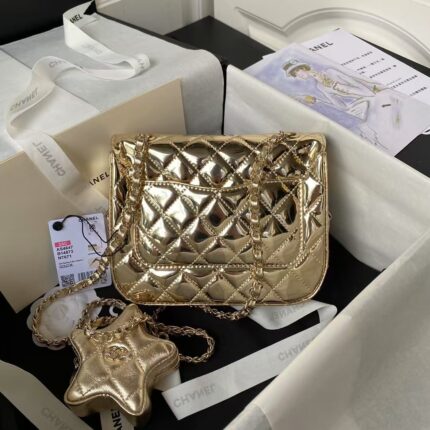 Chanel AS4647 Mini Flap Bag With Star Coin Purse Metallic Calfskin & Gold Metallic Gold