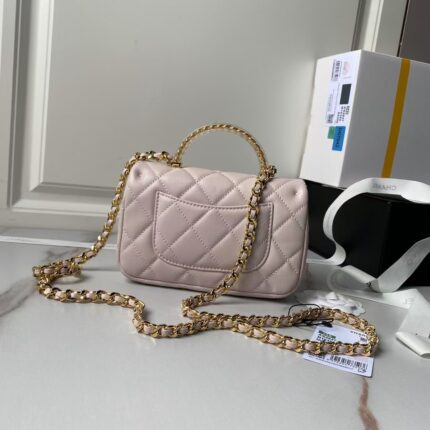 Chanel AS4847 Mini Flap Bag With Top Handle Lambskin Resin Pink