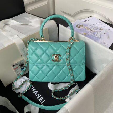 Chanel AS4654 Mini Trendy CC Flap Bag Turquoise Lambskin Light Gold Hardware