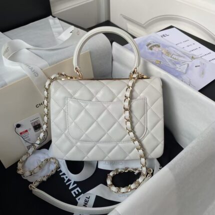 Chanel AS4847 Mini Flap Bag With Top Handle Lambskin Resin White
