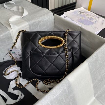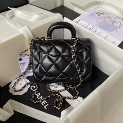 Chanel 24C AS4543 Mini Flap Bag Chain Bag Top Handle Black Lambskin