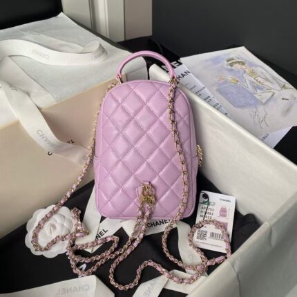 Chanel 24C AP3573 Mini Backpack Lambskin Gold Metal Pink