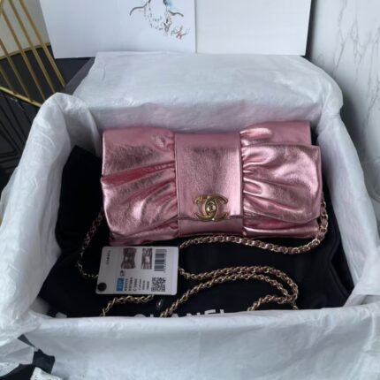 Chanel 24B AS5129 Metallic Lambskin Butterfly Evening Bag Metallic Pink