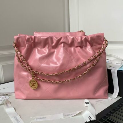 Chanel 22 AS3980 Mini Tote Shiny Calfskin & Gold-Tone Metal Dark Pink