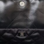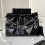 Chanel 22 Hobo Bag 24C AS4486 Silver Metallic Black Shiny Calfskin New Edition Horizontal