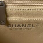 The interior is lined in gold metallic lambskin with a zip pocket with Chanel zipper and an open pocket underneath.