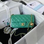Chanel 23K AS1787 Mini Pearl Embossed Rectangular Flap Bag Lambskin Brushed Metal Hardware Green