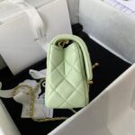 Chanel 23K AS1787 Mini Pearl Embossed Rectangular Flap Bag Lambskin Brushed Metal Hardware Light Green