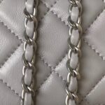成为第一个“Chanel 23K AS1787 Mini Pearl Embossed Rectangular Flap Bag Lambskin Brushed Silver Metal Hardware Light Grey” 的评价者