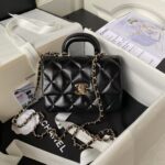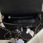 This Chanel Vintage flap bag is crafted from black lambskin with gold-tone hardware and features the signature CC turnlock closure and front flap, half-moon back pockets and black top handles.