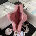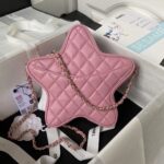 This Chanel Star bag is crafted from pink lambskin with light gold hardware and features a half-moon back pocket, zip top closure and interwoven light gold chain and pink leather shoulder straps.
