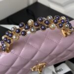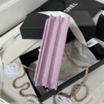 New Chanel 24p Top Handle WOC Pearl Handle Gold Embossed Double C Button Shiny Crinkled Lambskin Purple