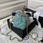 Shiny crinkled lambskin with pearl metal handles