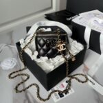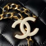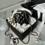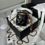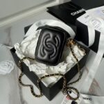 This Chanel mini cosmetic bag is made of shiny lambskin. More than just a bag, this limited edition cosmetic bag is the embodiment of elegance and practicality, perfect for those who appreciate compact luxury.