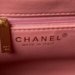 This Mini Kelly is crafted from dark pink calfskin leather with brushed gold hardware, tonal stitching, two flat rear top handles, interwoven brushed gold and dark pink leather shoulder straps and the signature CC turnlock closure.
