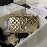 Cruise 2023/24 flap bag and star coin purse in mirrored calfskin, metallic calfskin and gold-tone metal.