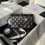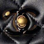 2023/24 Métiers d’art flap bag:small flap bag, shiny lambskin, enamel and gold-tone metal, black.