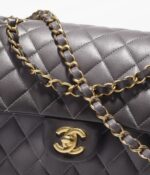 This flap bag is made of ombre lambskin with light gold hardware, front flap with CC turnlock closure, half-moon back pocket, interwoven light gold chain and ombre leather crossbody strap.