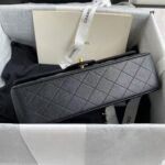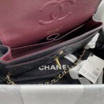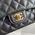 This medium classic double flap bag is crafted in black caviar leather with gold hardware, signature CC turnlock closure on the front flap, half-moon back pocket, adjustable interwoven gold chain and black leather shoulder strap.