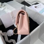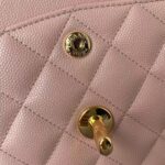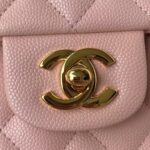 This Small Classic Flap Bag is in light pink caviar leather with gold hardware and features a front flap with CC turnlock closure, halfmoon back pocket and adjustable interwoven gold tone chain link and light pink leather shoulder/crossbody strap.