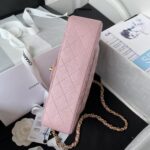 This small Classic Flap Bag is crafted in pink lambskin with gold hardware, front flap with CC turnlock closure, half-moon back pocket, adjustable interwoven gold chain and pink leather shoulder/crossbody strap.