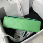 This small classic double flap bag is crafted in green lambskin leather with ombre metal hardware, front flap with signature CC turnlock closure, half-moon back pocket, adjustable interwoven ombre chain and green leather shoulder strap.