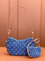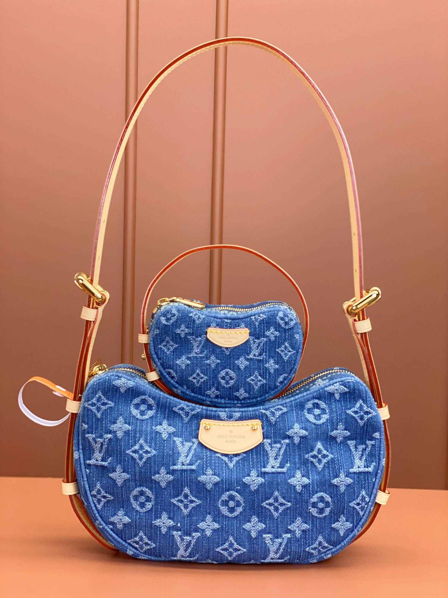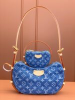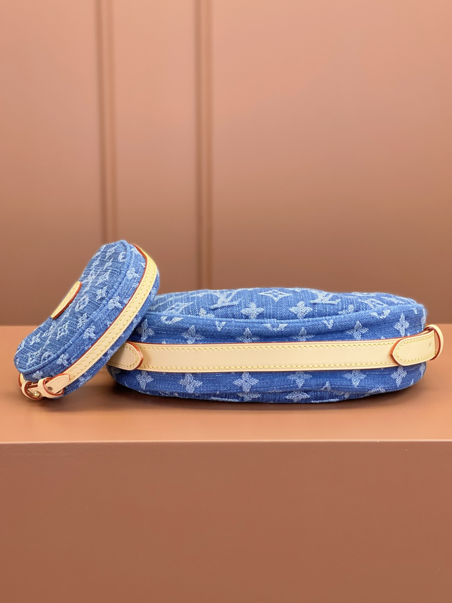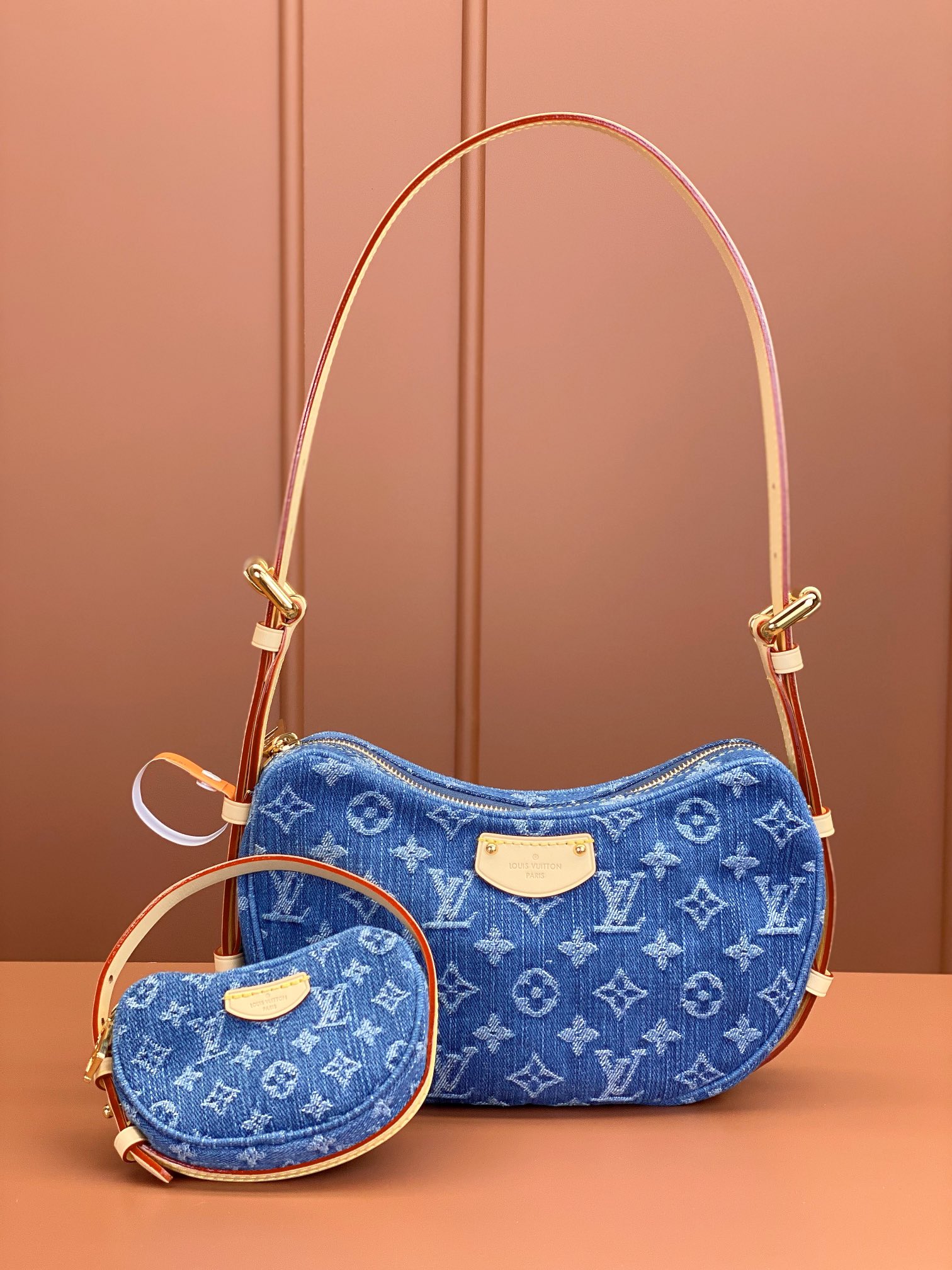Made from certified-organic cotton, Monogram Denim canvas brings casual sophistication to the Croissant MM handbag. With its detachable strap that adjusts on both sides, the versatile Croissant can be worn cross-body or on the shoulder, with or without the mini croissant attached. Each bag comes with a matching mini version of the Croissant that is four times smaller than the original.