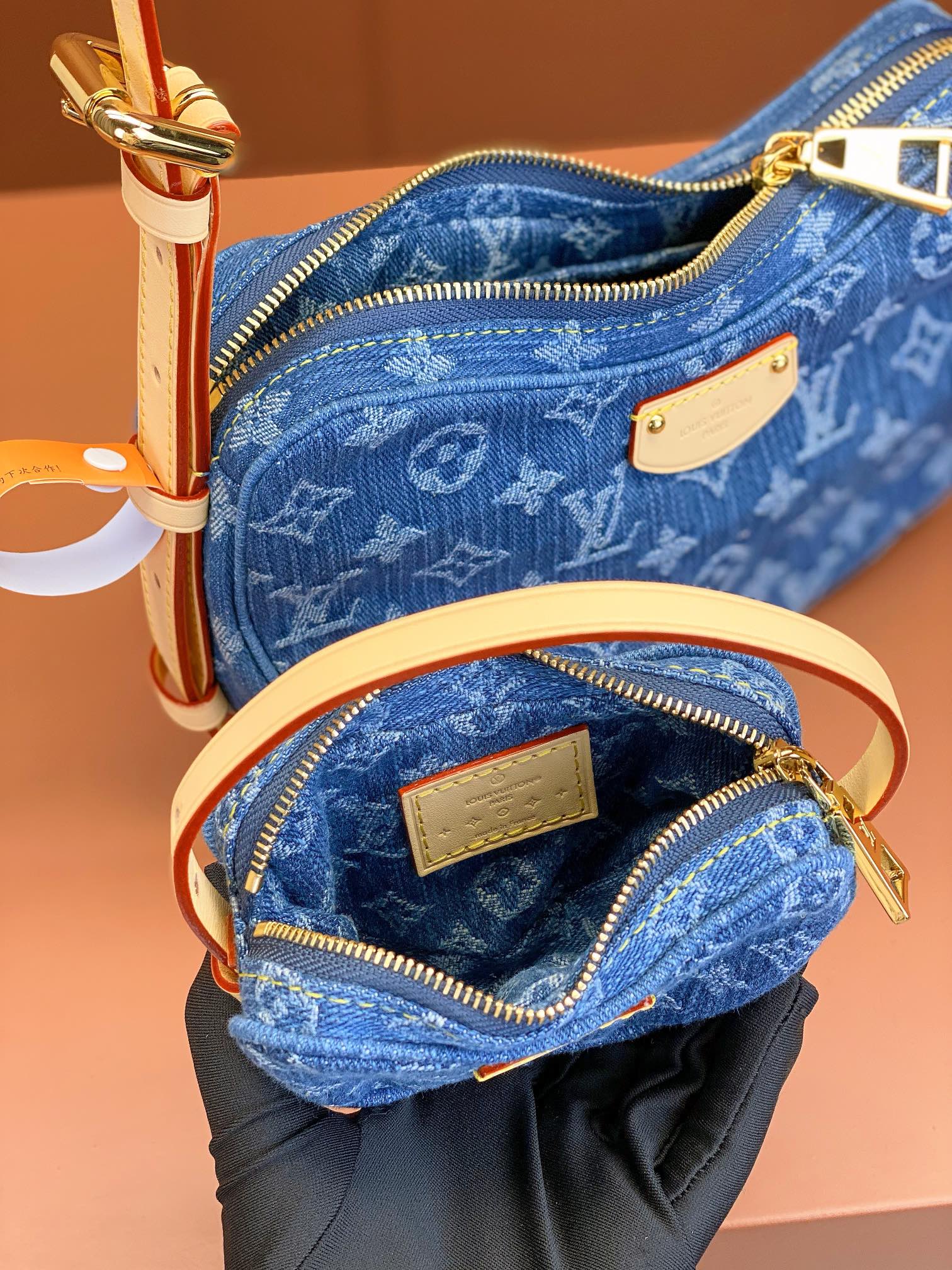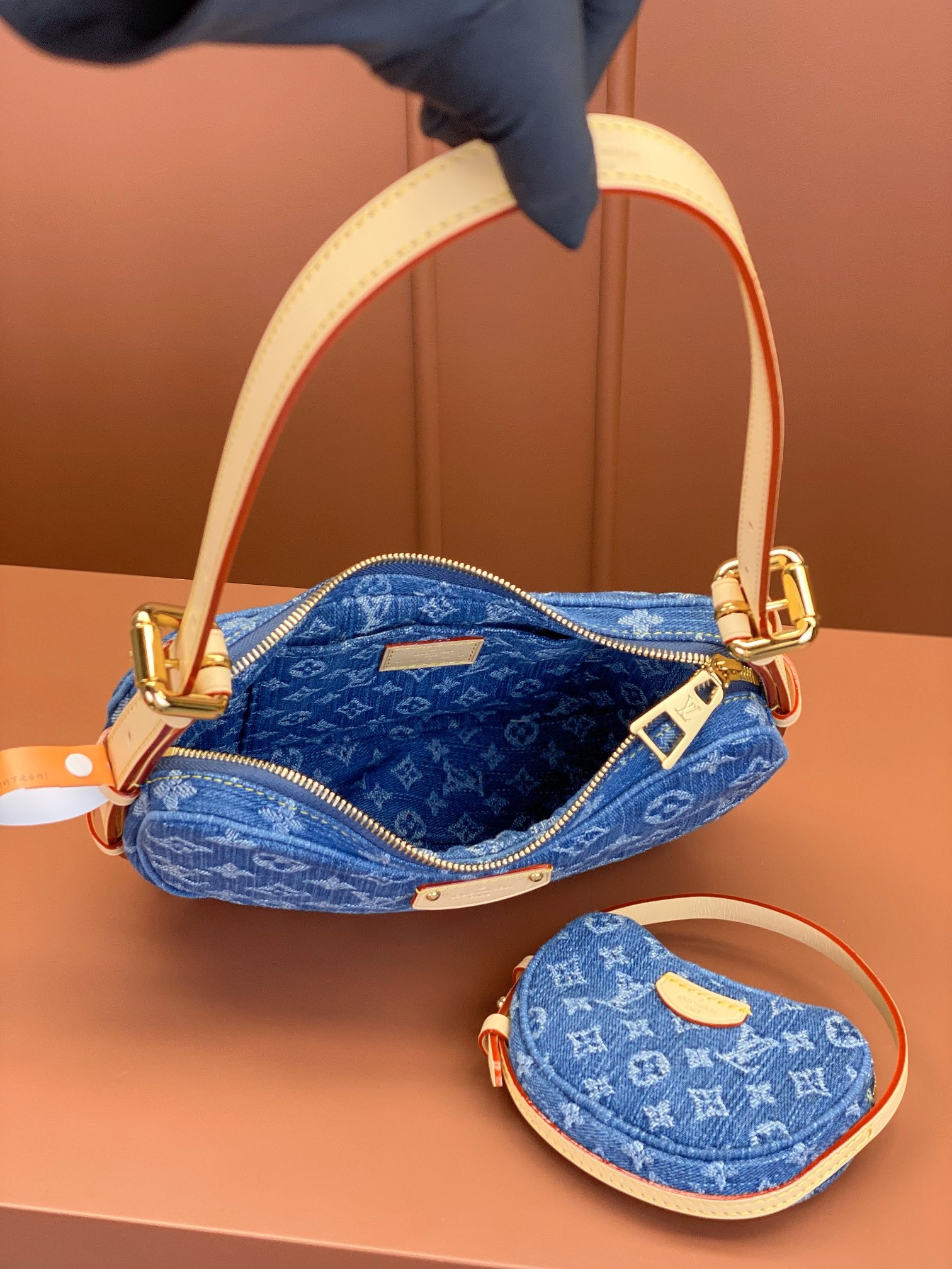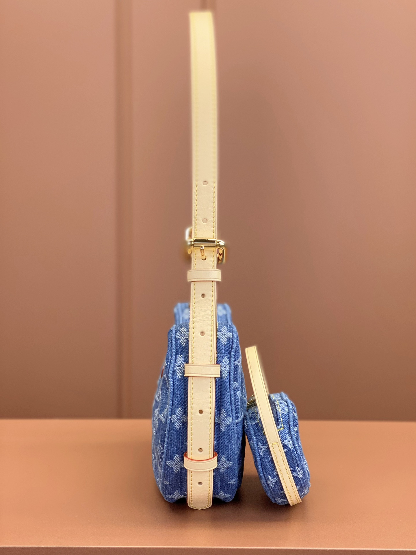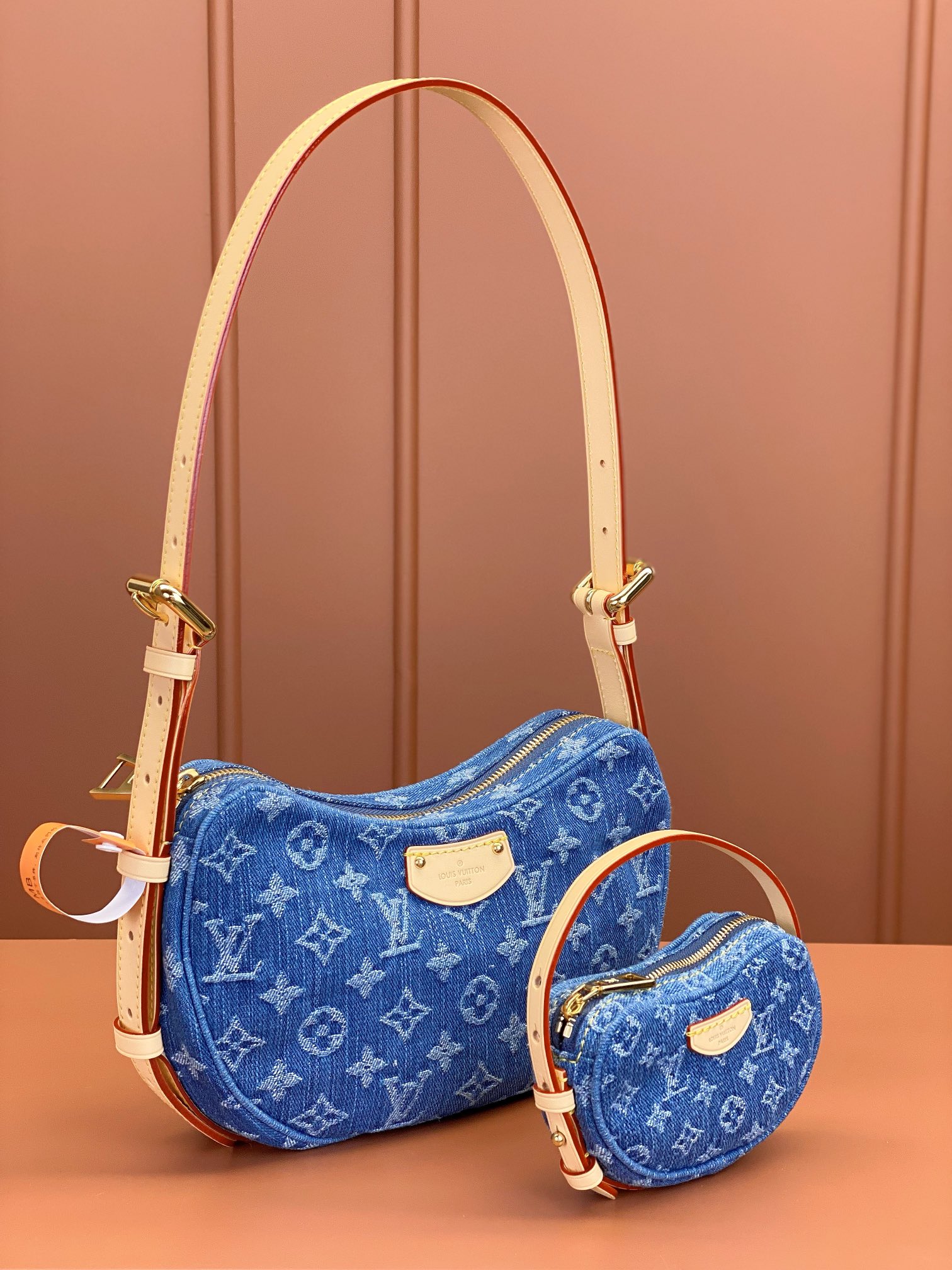 Made from certified-organic cotton, Monogram Denim canvas brings casual sophistication to the Croissant MM handbag. With its detachable strap that adjusts on both sides, the versatile Croissant can be worn cross-body or on the shoulder, with or without the mini croissant attached. Each bag comes with a matching mini version of the Croissant that is four times smaller than the original.