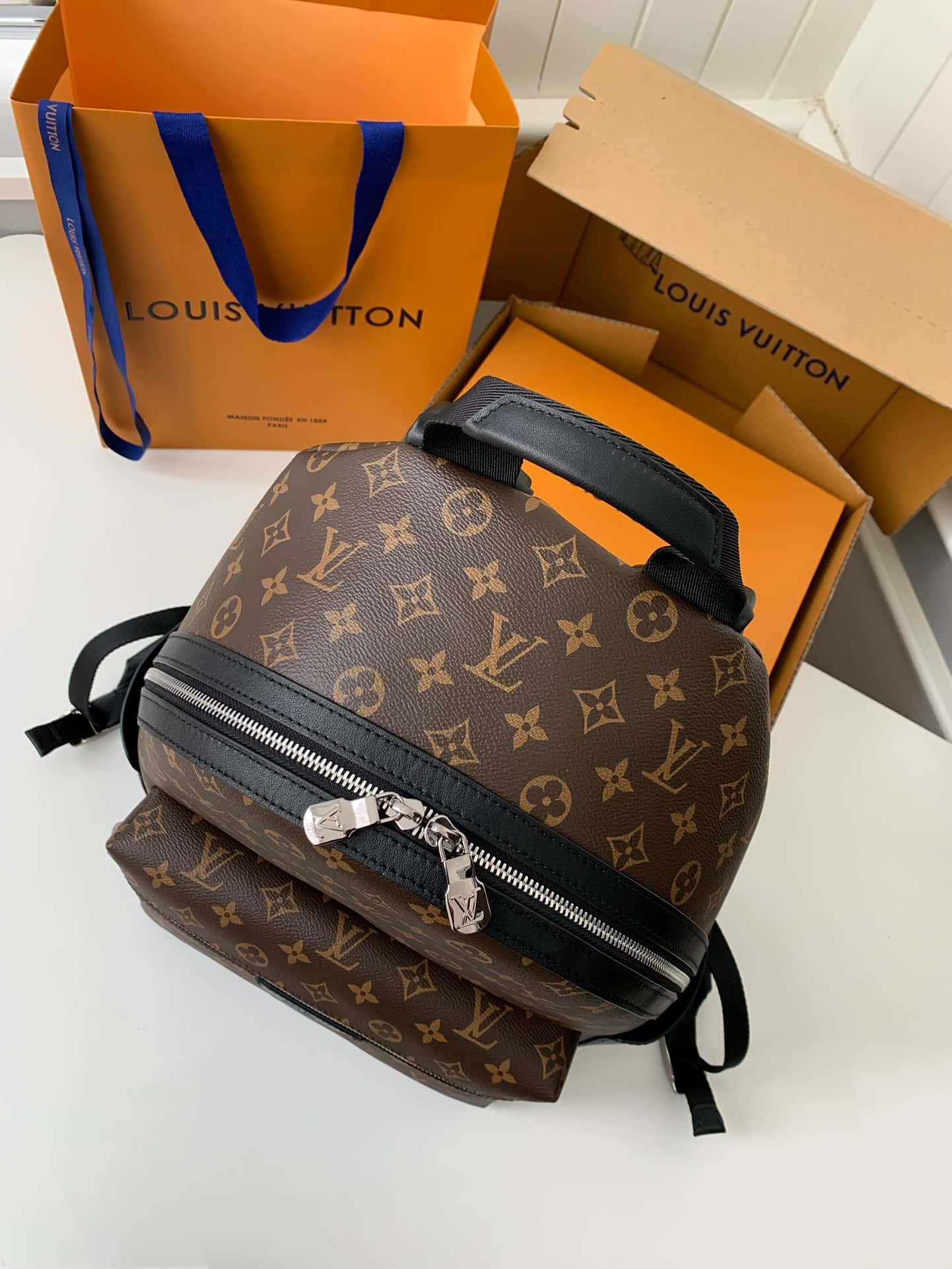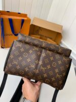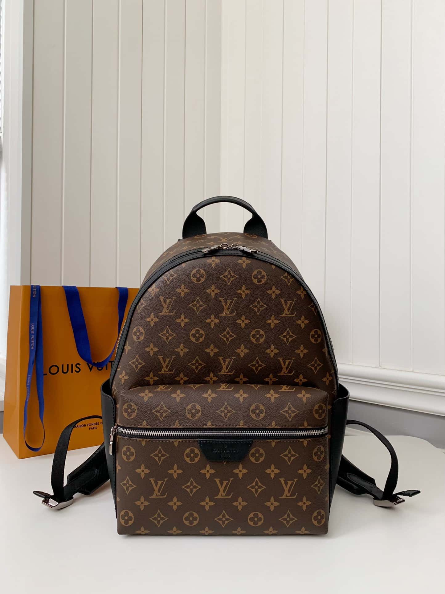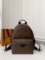 The pairing of Monogram Macassar canvas with black cowhide-leather trim and palladium-color hardware brings classic elegance to the Discovery Backpack’s modern lines. The roomy outside pocket makes it easy to get at essentials. Inside there are three pockets, one designed for a tablet. Adjustable straps and a top handle give carry options.
