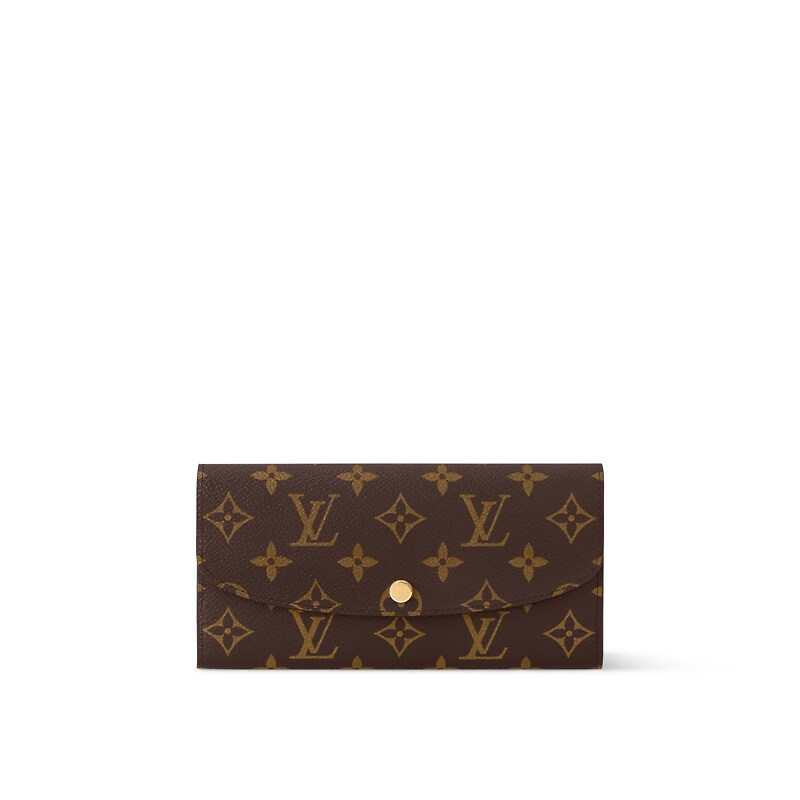Proving that functionality and beautiful design can go together, the Emilie Wallet is elegance itself in supple Monogram canvas with a fresh lining color. Numerous pockets and an attractive shape make it irresistible.
