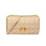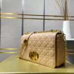 The new Dior Caro handbag is decorated with Cannage pattern stitching on gray calfskin, showing a unique stitch texture. The flap of this soft bag is equipped with a retro gold-toned metal rotating “CD” lock. The design is inspired by the unique closure of the Christian Dior perfume bottle. The detachable iconic “CD” link shoulder strap can be replaced with a wide embroidered shoulder strap, allowing you to create an elegant and fashionable look regardless of occasion, morning or evening.