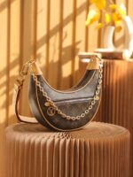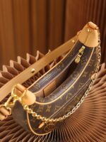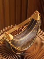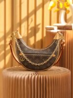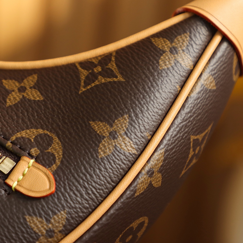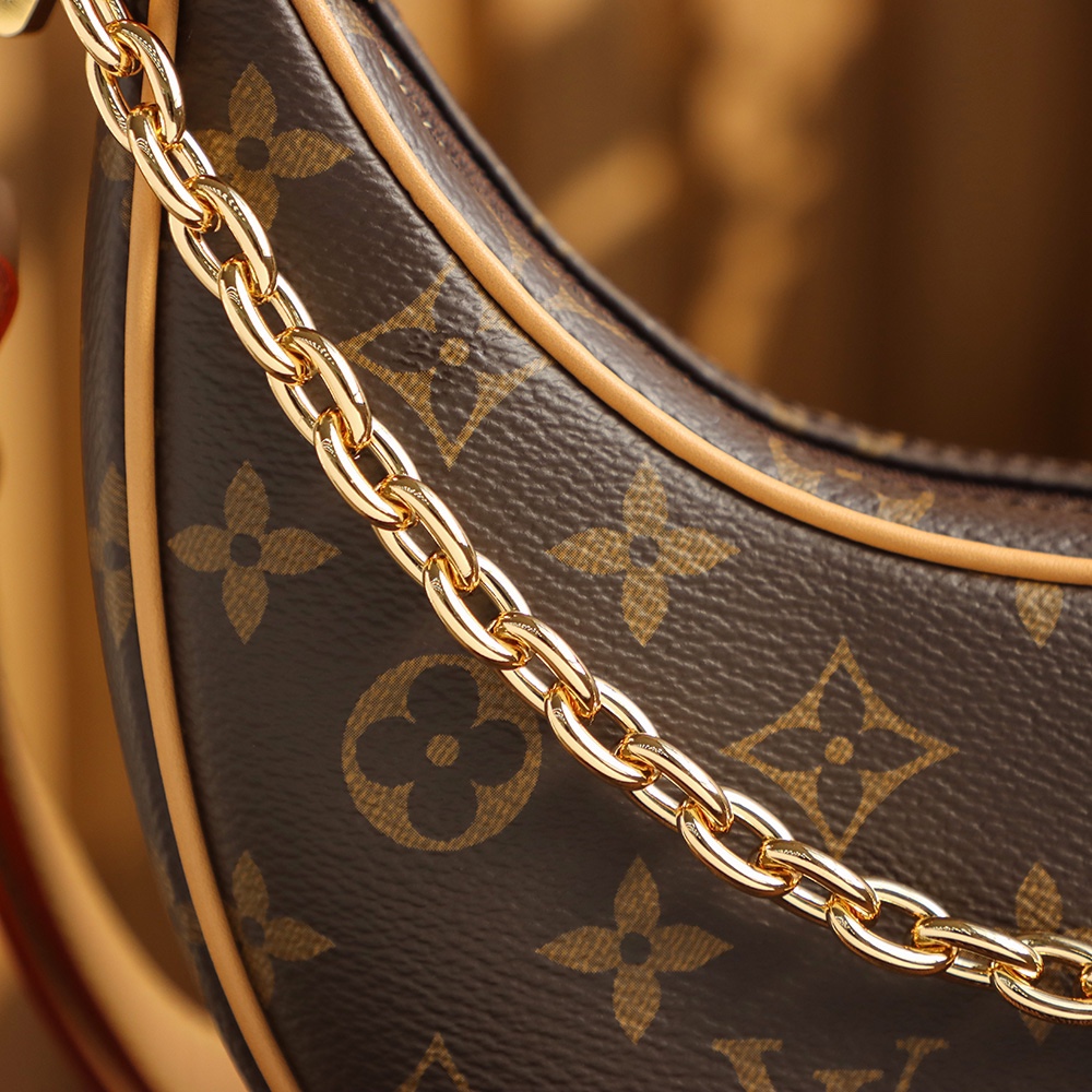 Created by Nicolas Ghesquière for the Cruise 2022 Collection, the Loop handbag features a half-moon silhouette, inspired by the Croissant bag from the House archives. It has a body-friendly, compact shape and a chain for shoulder carry, as well as a cross-body leather strap. The front zip pocket closes with an LV Circle zip pull.