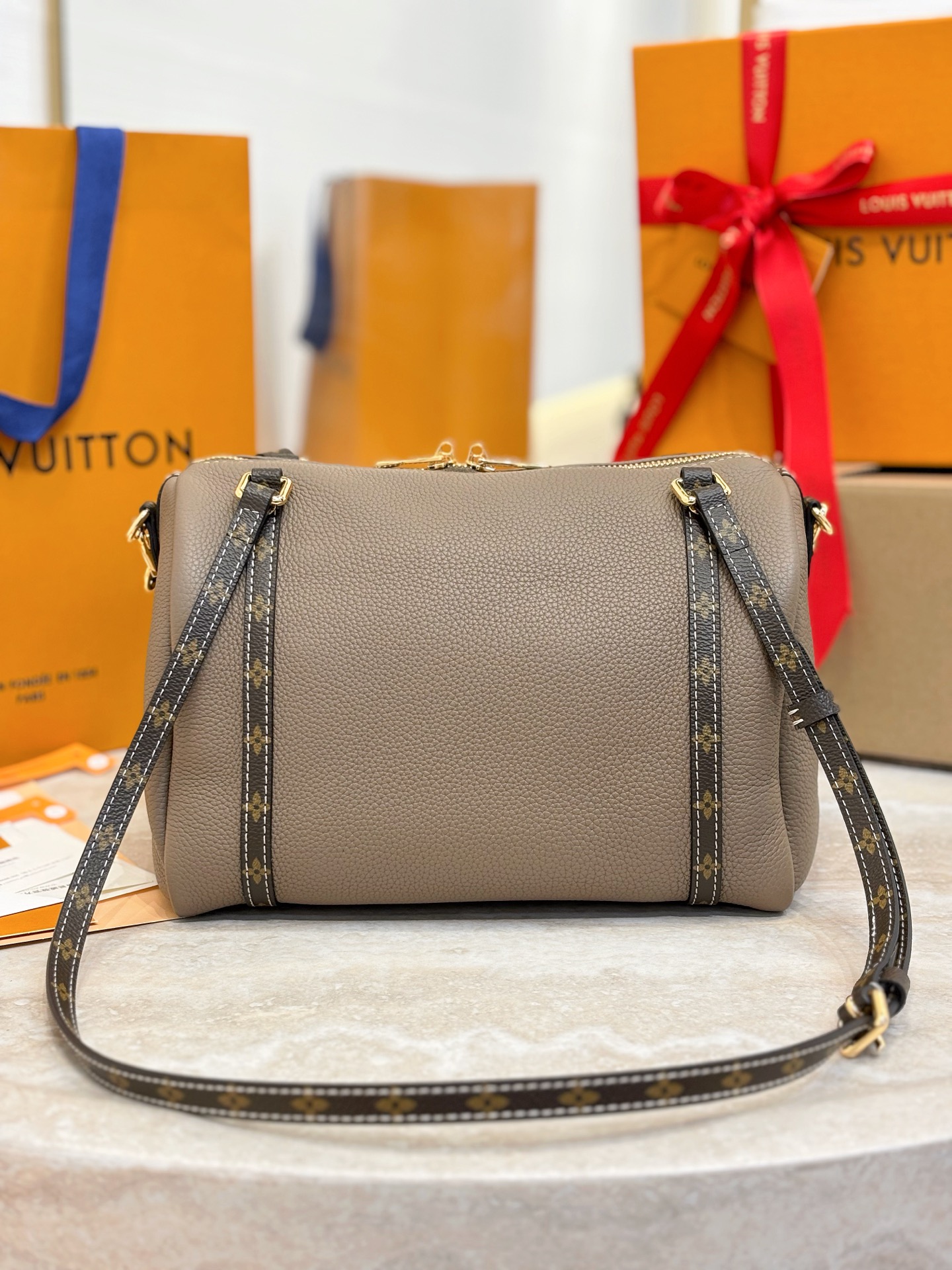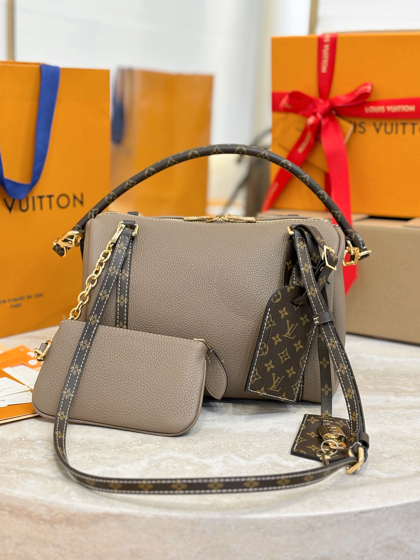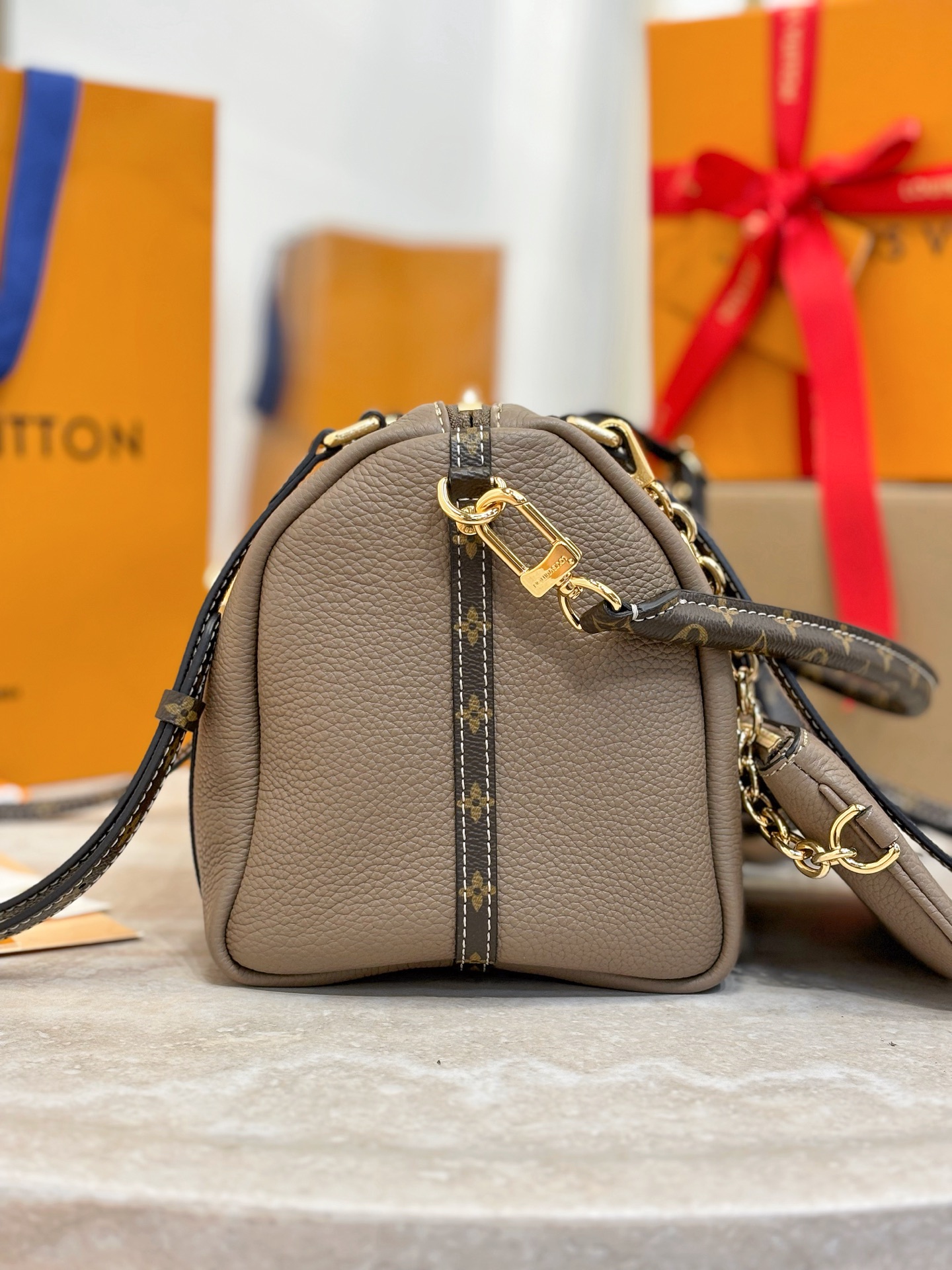Creative Director Nicolas Ghesquiere takes us to a “convergence of emotions” at a railway station. Inspired by 19th-century railway travel, he designs with a blend of classic and futuristic elements, presenting a series of silhouettes that combine elegance, practicality, and fluidity. There are also various redesigned luggage and handbags, perfectly embodying the brand’s historical “travel spirit”. The most legendary handbags of Louis Vuitton are reinterpreted, paying homage to the brand’s historical travel spirit – the tradition of the Keepall is echoed in the soft handbags redesigned with soft tones and streamlined shapes, exuding a noble luxury. Size: 25x15x18cm
