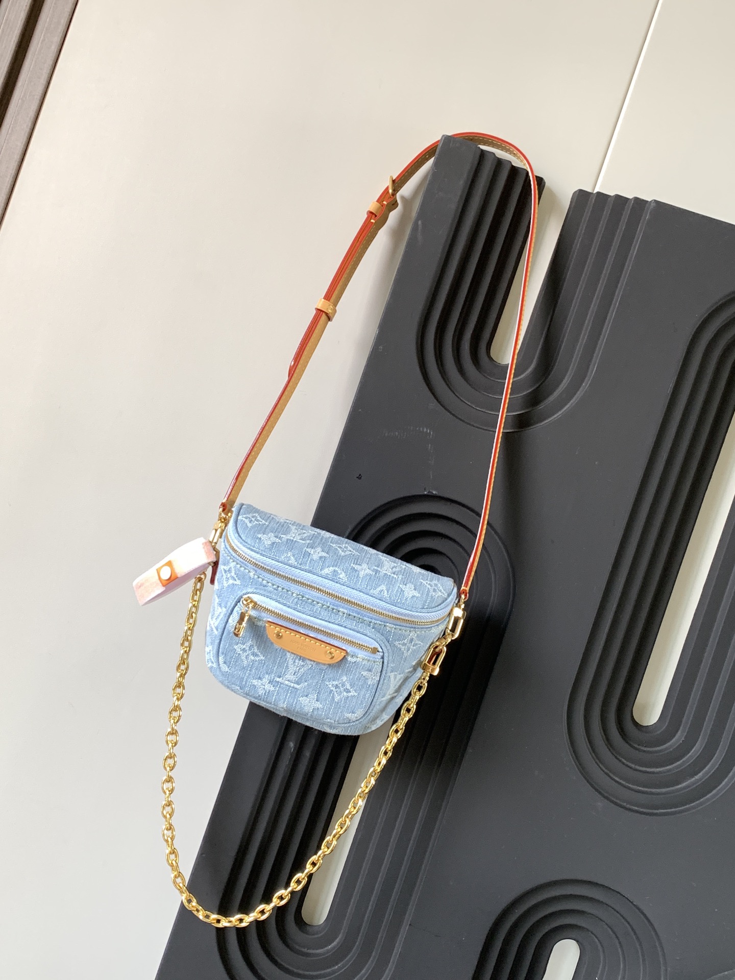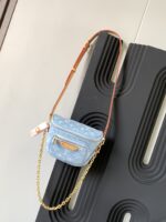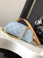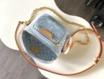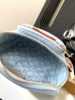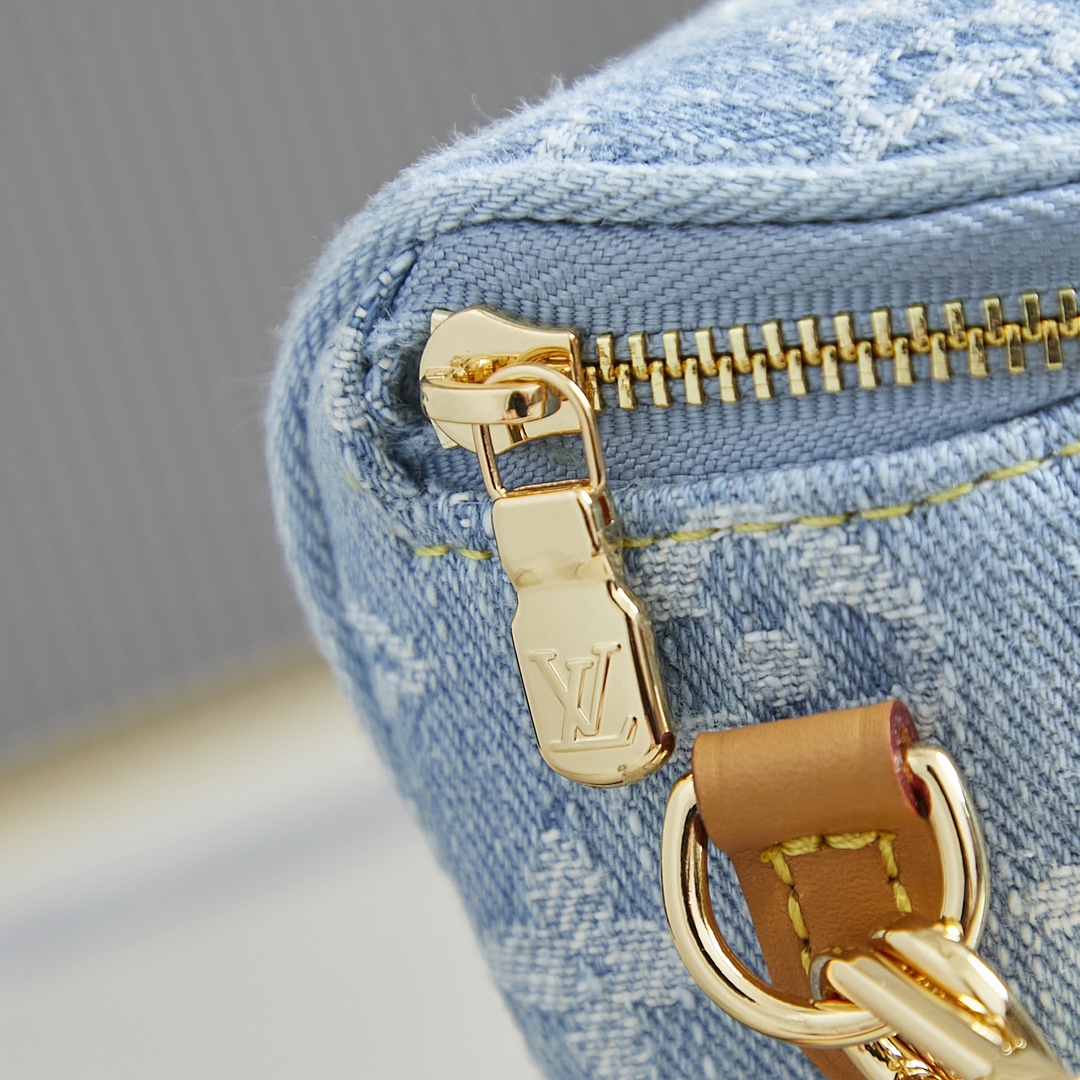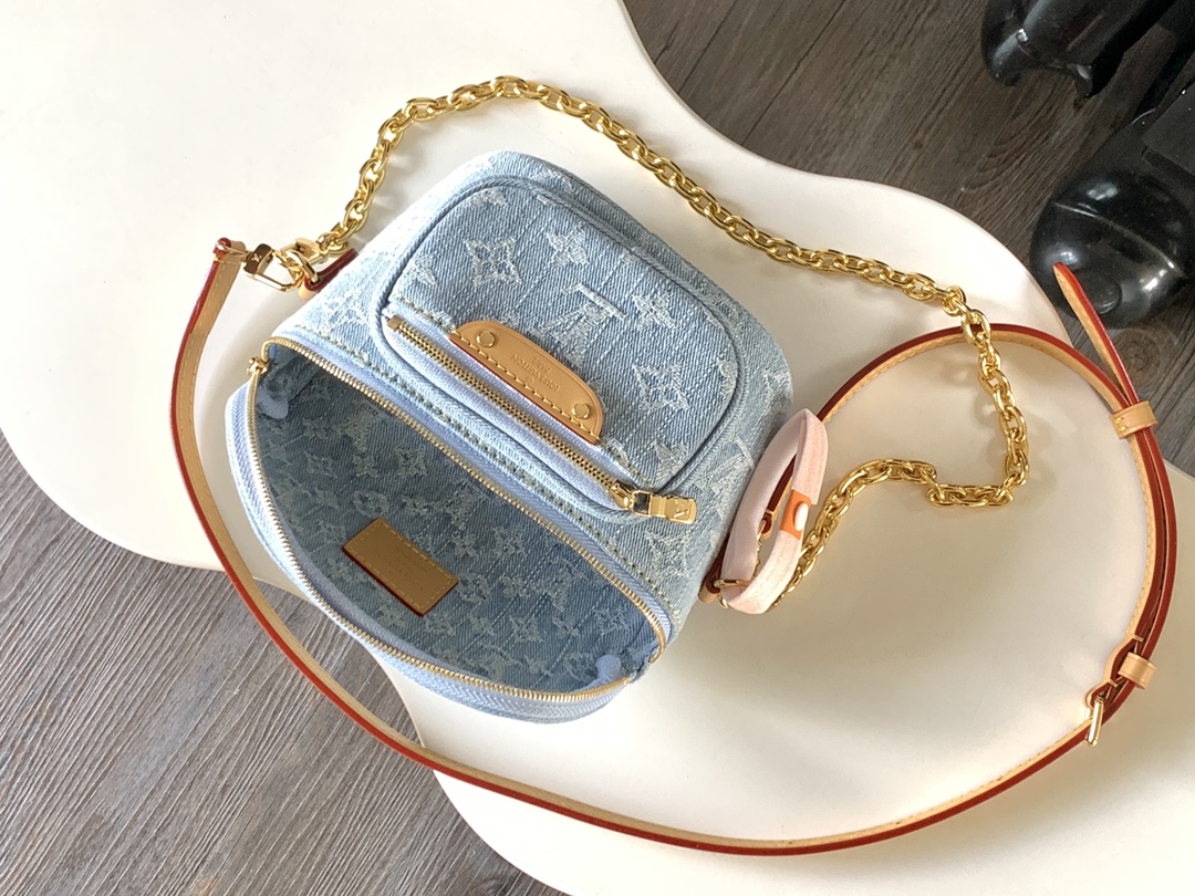 This summery edition of the Mini Bumbag comes in vintage-look denim, which is woven with the Monogram pattern, then bleached and stonewashed. This on-trend model has a zipped main compartment and a zipped front pocket, which is signed with a Louis Vuitton-embossed leather label. Its removable chain and removable, adjustable strap offer different carry options.