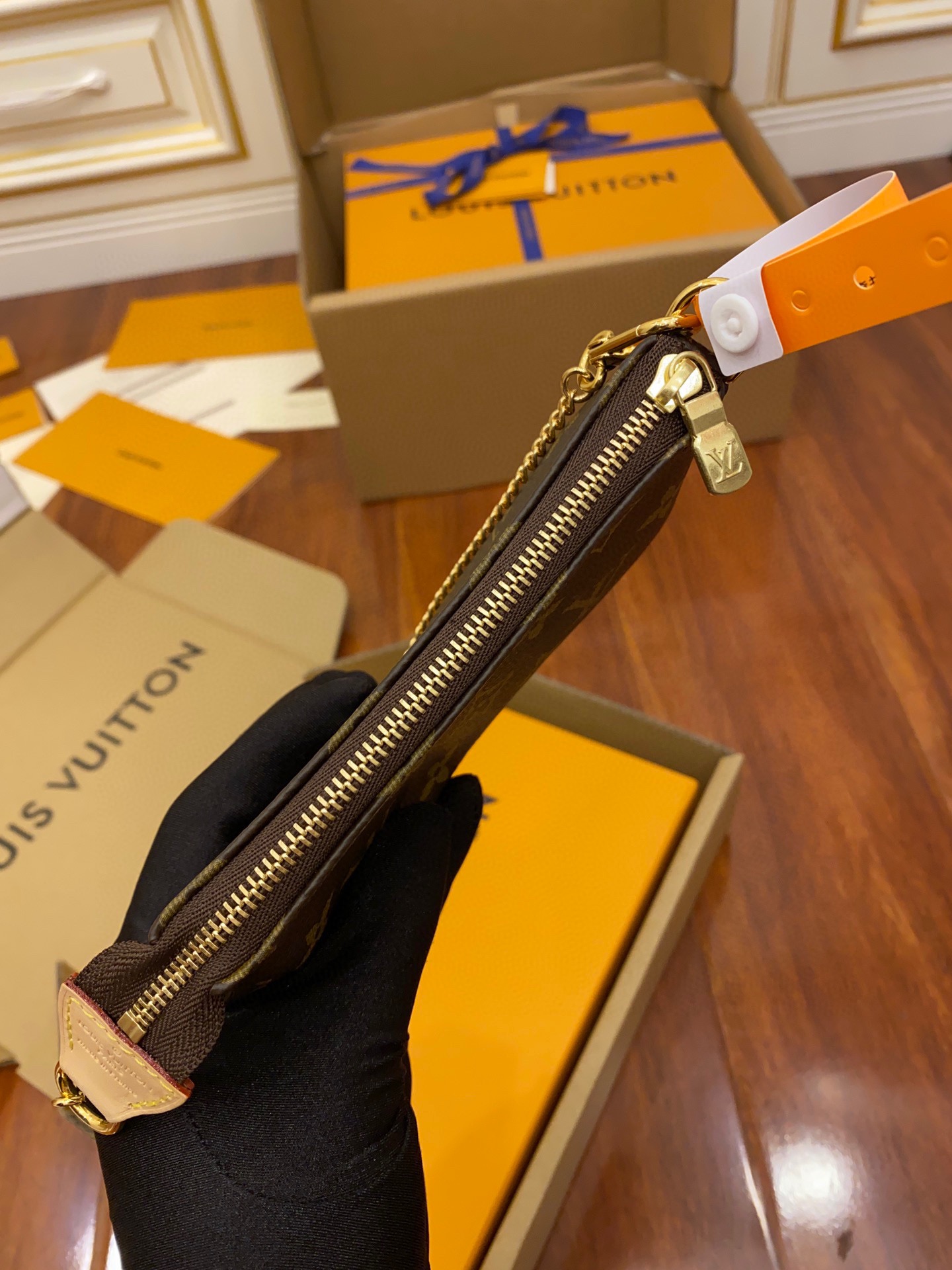 The Mini Pochette Accessoires in Monogram canvas is a stylish way to carry essentials. Its secure zip protects a spacious compartment, while the chain and hook enable it to be attached to a larger bag, as well as carried in the hand. The rounded shape and supple canvas give this pouch a particularly pleasant feel.
