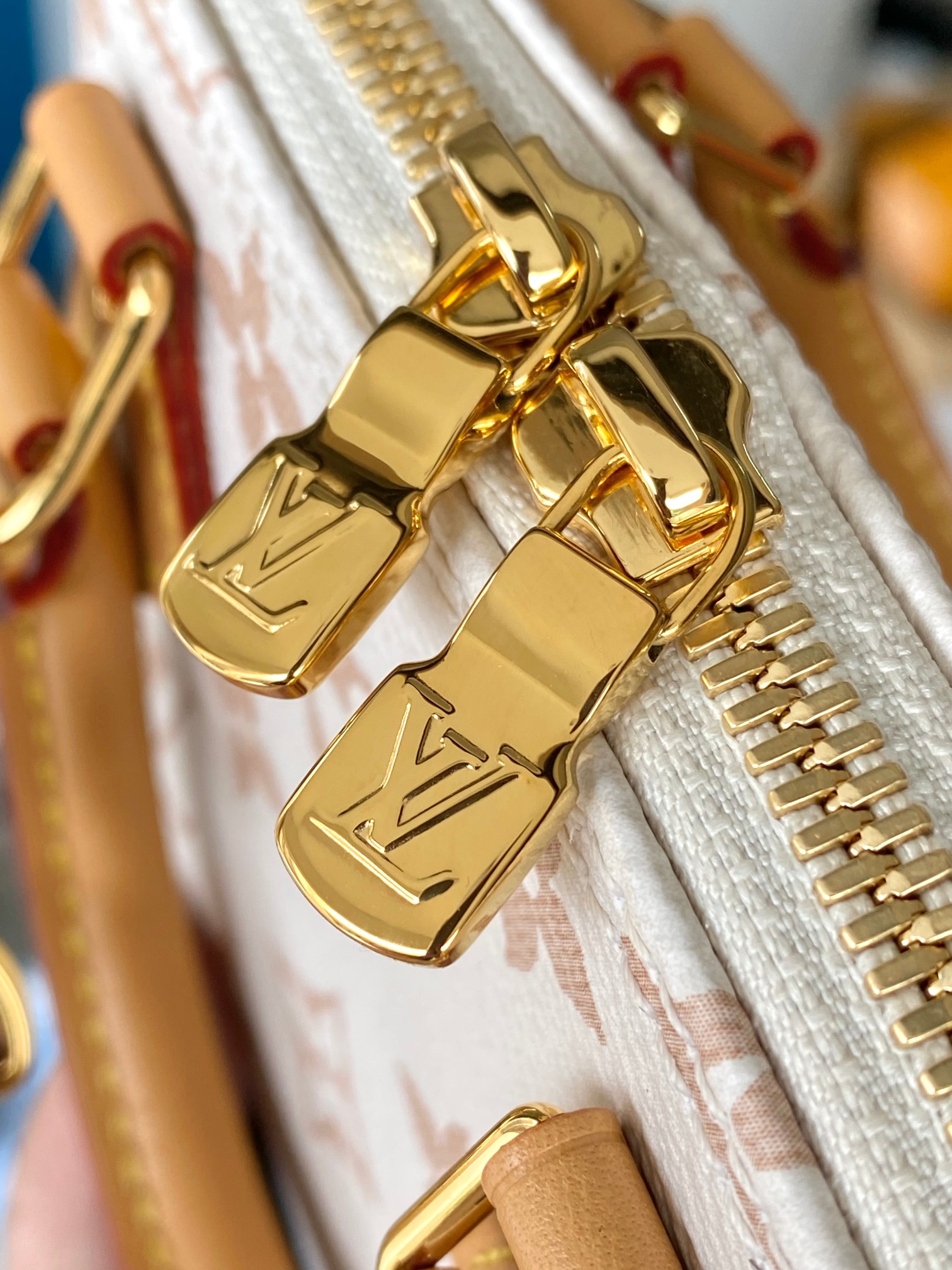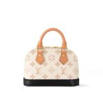 This version of the Nano Alma bag was inspired by Louis Vuitton’s Cruise 2024 fashion show. It comes in Monogram Dune canvas, which was seen on the runway, and is complemented by leather trim. In addition to its two handles, this miniature replica of the iconic Alma features a removable, adjustable shoulder strap offering different carry options.