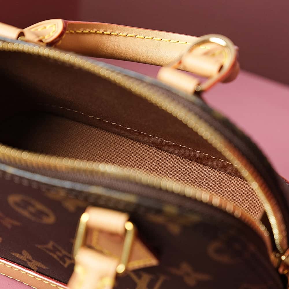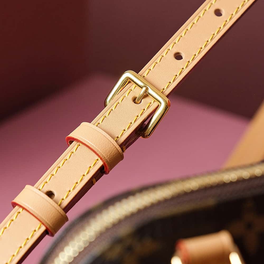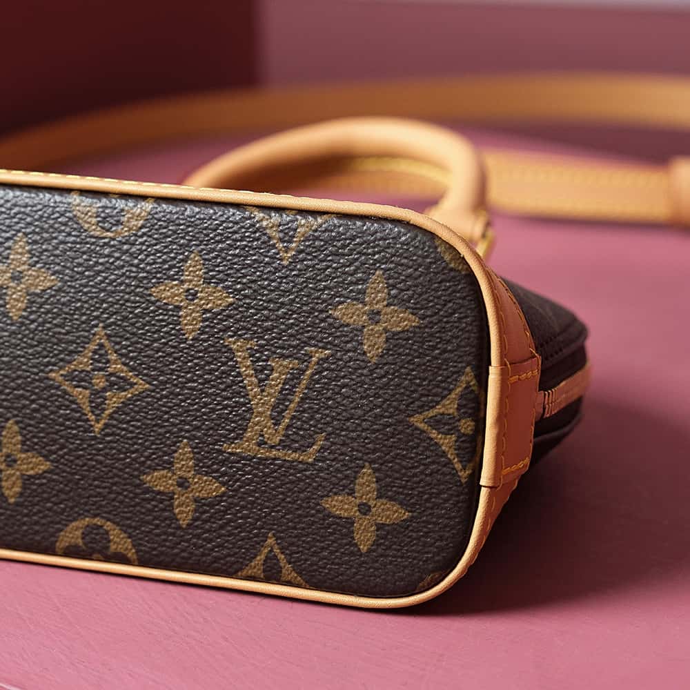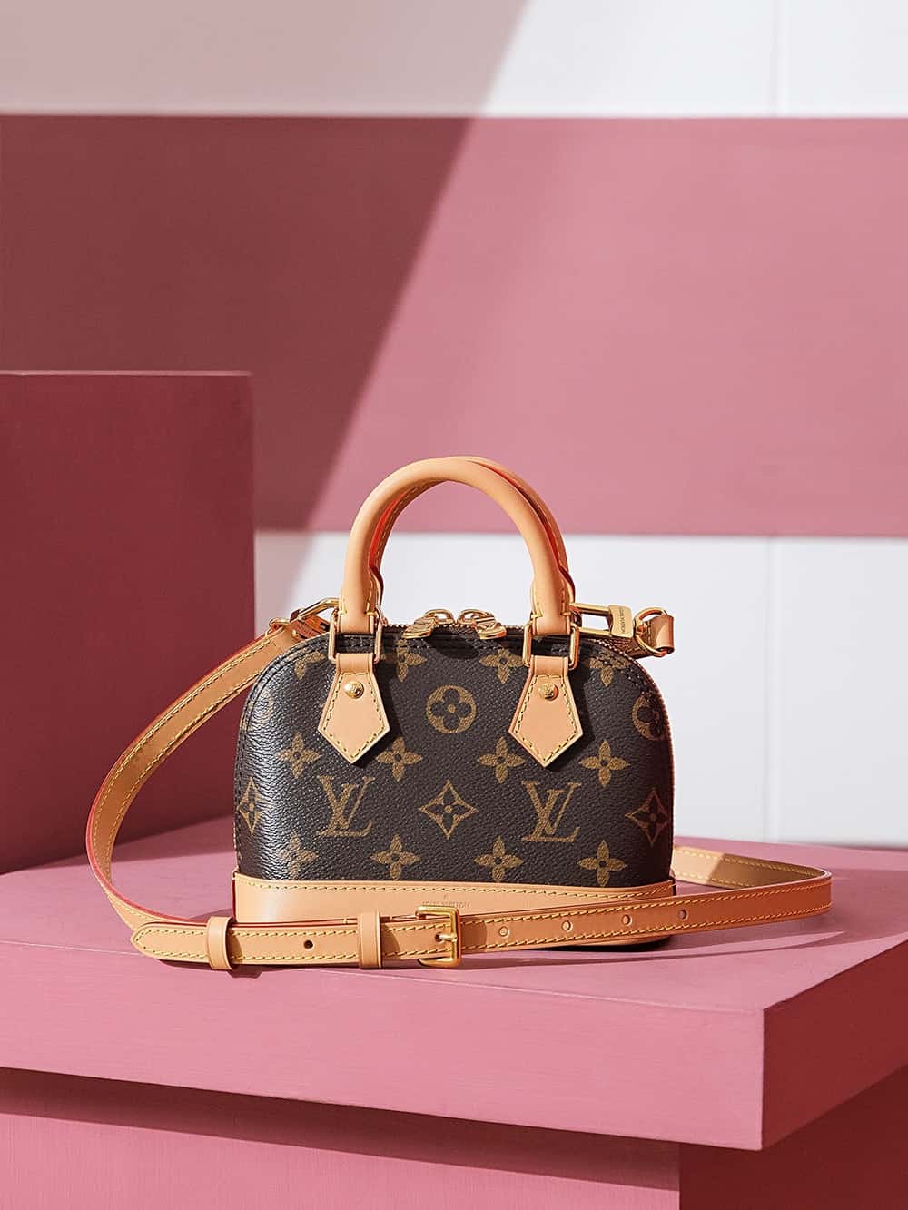 A miniature replica of the iconic Alma bag, the Nano Alma pairs Louis Vuitton’s signature Monogram canvas with natural leather trim. This exquisitely crafted piece combines heritage appeal with modern functionality: the double-zip closure reveals a surprisingly spacious interior, while the two leather handles and adjustable, removable shoulder strap offer multiple carry options.