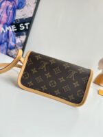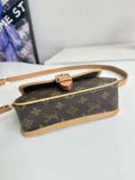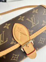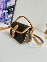 A miniature version of the Diane bag, the Nano Diane comes in Louis Vuitton’s iconic Monogram canvas. Ideal for essentials including a phone, this model is complemented by natural leather trim, which highlights its distinctive rounded flap and magnetic, belt-style closure. A removable handle and removable, adjustable shoulder strap offer different carry options.