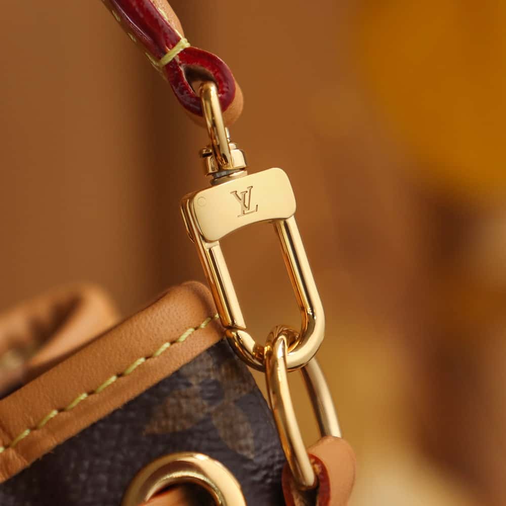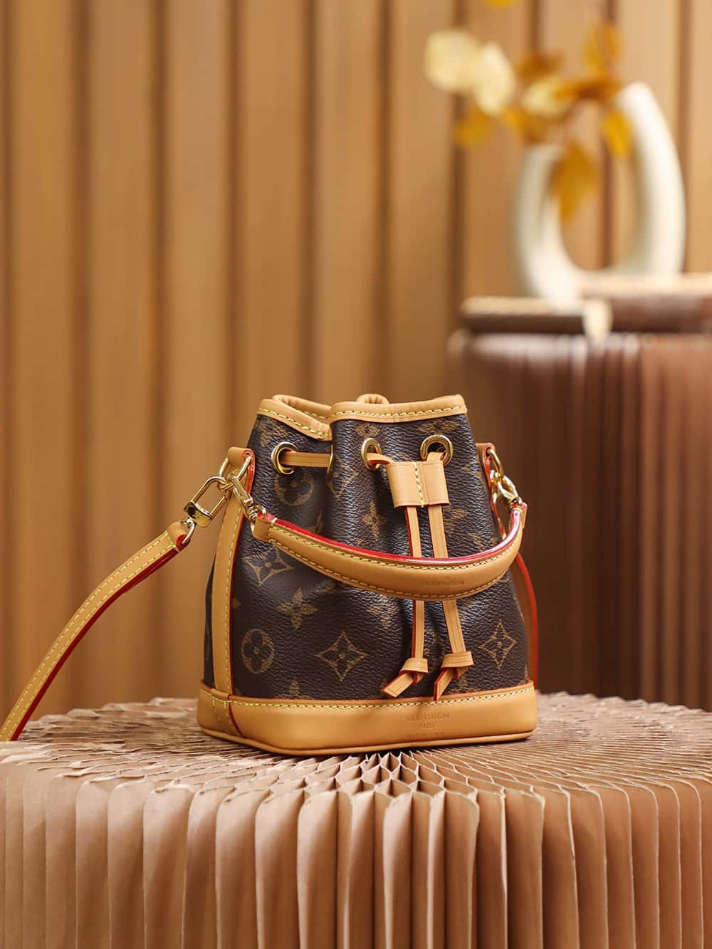 The Nano Noé is a miniature version of the iconic Noé bag, created in 1932. Crafted from Monogram canvas with trim in natural cowhide leather, this tiny Nano Noé combines heritage with modern functionality. Its removable handle and removable, adjustable strap offer multiple carry options, while it is spacious enough to hold essentials including keys, a card holder and a smartphone.