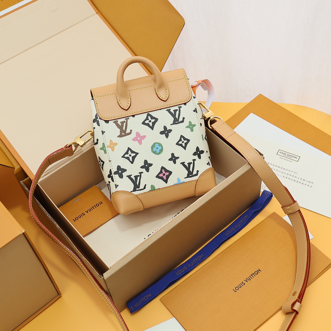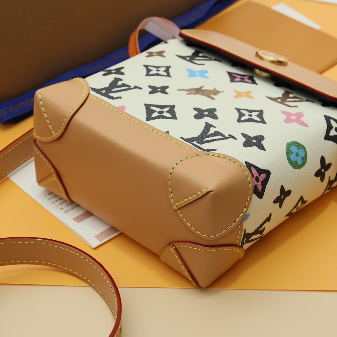 The Nano Steamer bag is a miniature version of the House’s vintage Steamer Bag. As part of the collaboration with Tyler, it’s fashioned from Monogram Craggy canvas, Tyler’s reimagining of the Monogram motif, giving it a drawn-by-hand feel. The reinforced corners and shoulder strap are in cowhide-leather as is the flap.