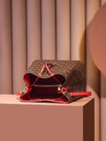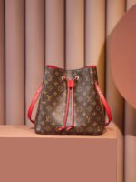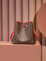 A true House icon, the NéoNoé bucket bag revisits a 1932 design by Gaston-Louis Vuitton. The original was created to transport bottles of Champagne in style; this modern version in Monogram canvas features a sleek shape, colorful leather trim and a matching bonded lining. The adjustable smart strap can be slung over the shoulder or lengthened for a trendy cross-body carry.