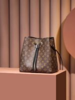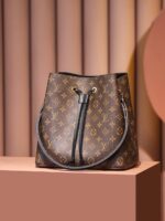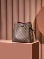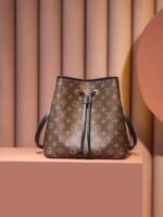 A true House icon, the NéoNoé bucket bag revisits a 1932 design by Gaston-Louis Vuitton. The original was created to transport bottles of Champagne in style; this modern version in Monogram canvas features a sleek shape, colorful leather trim and a matching bonded lining. The adjustable smart strap can be slung over the shoulder or lengthened for a trendy cross-body carry.