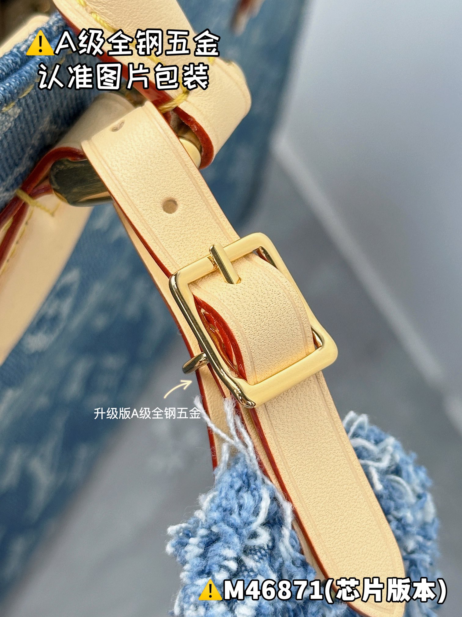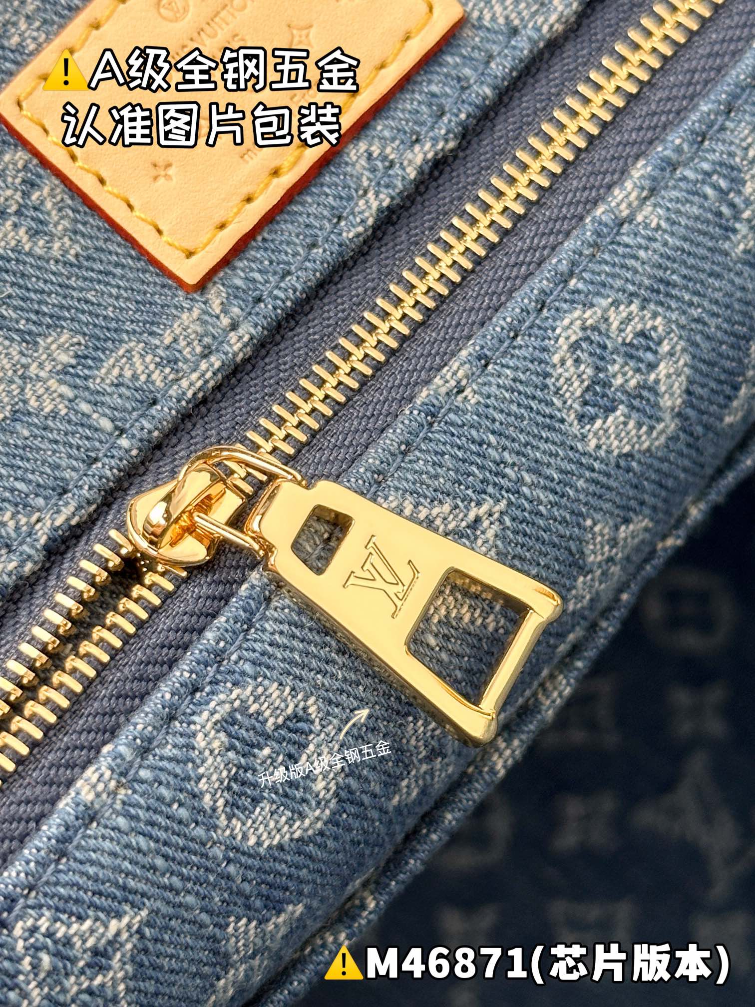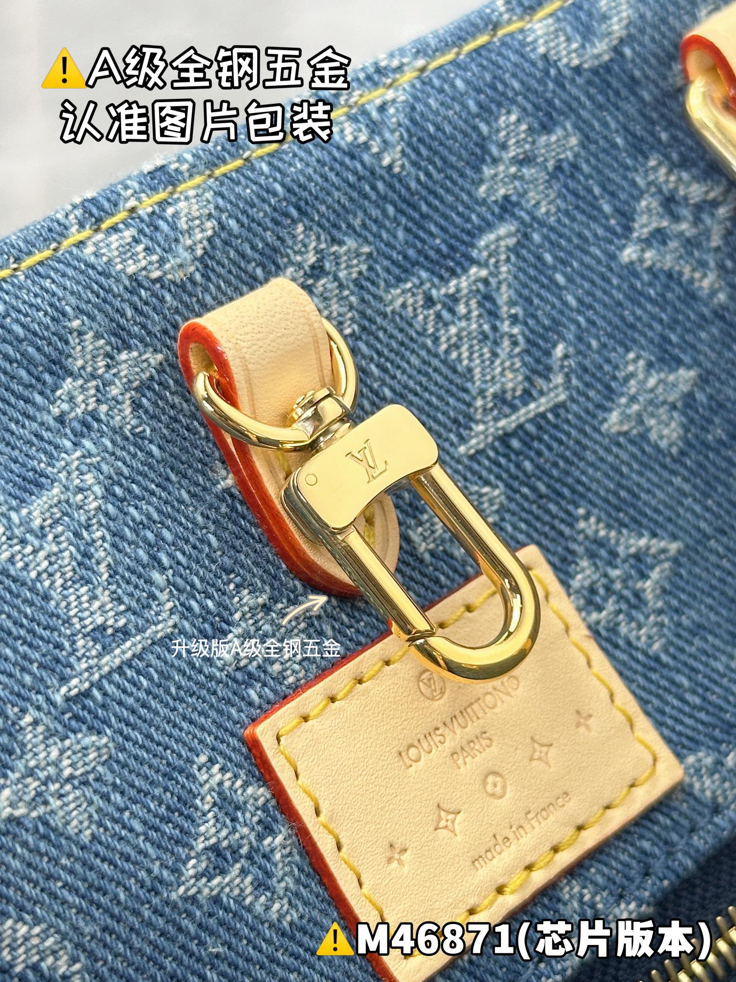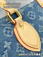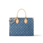 The OnTheGo MM tote bag is offered in new Monogram Denim canvas with natural cowhide-leather on the top handles and handle mounts. Thanks to the square shape, the OnTheGo has a large capacity and can hold a laptop. Its rolled-leather top handles and two longer shoulder straps enable carry options.