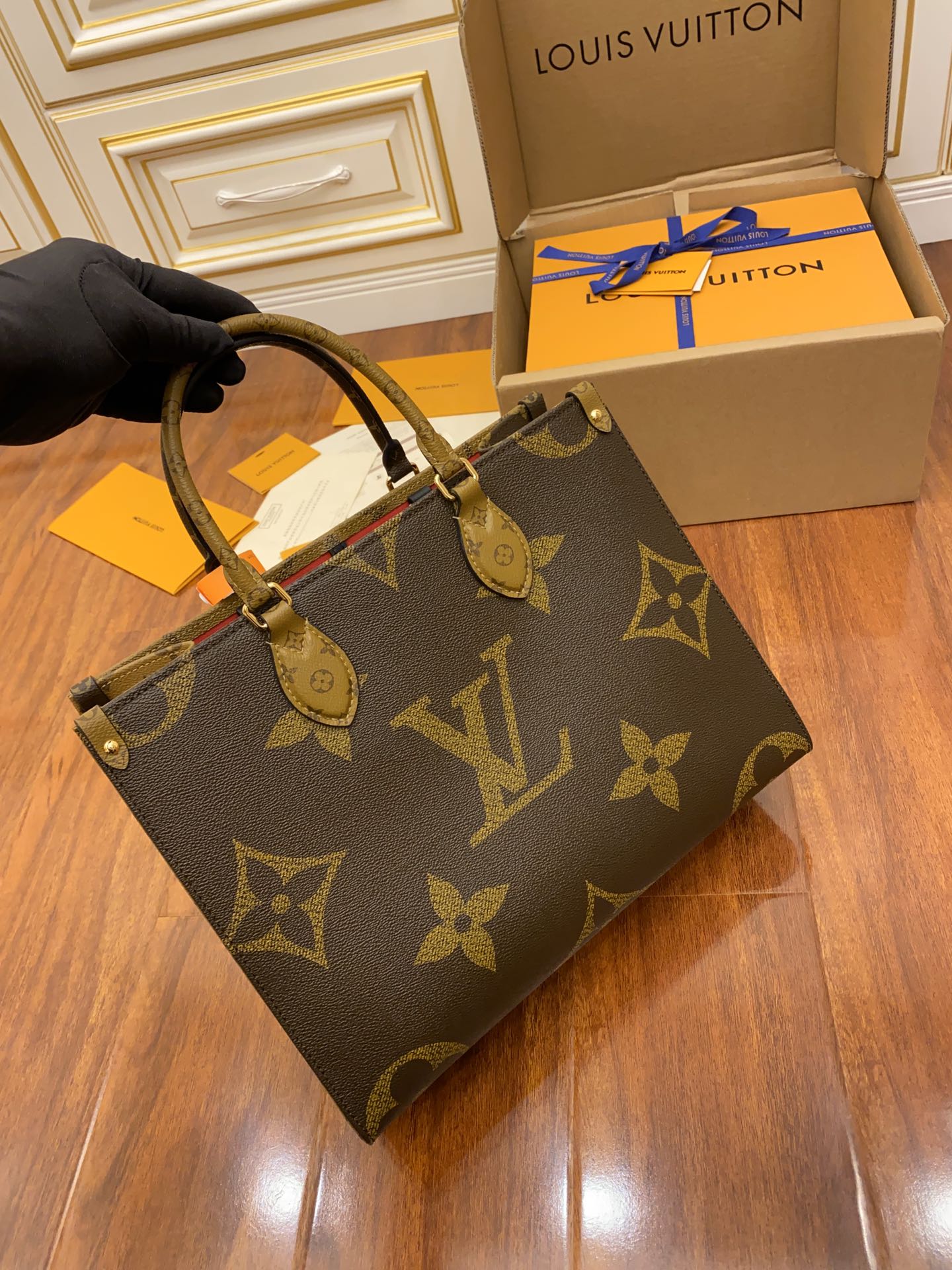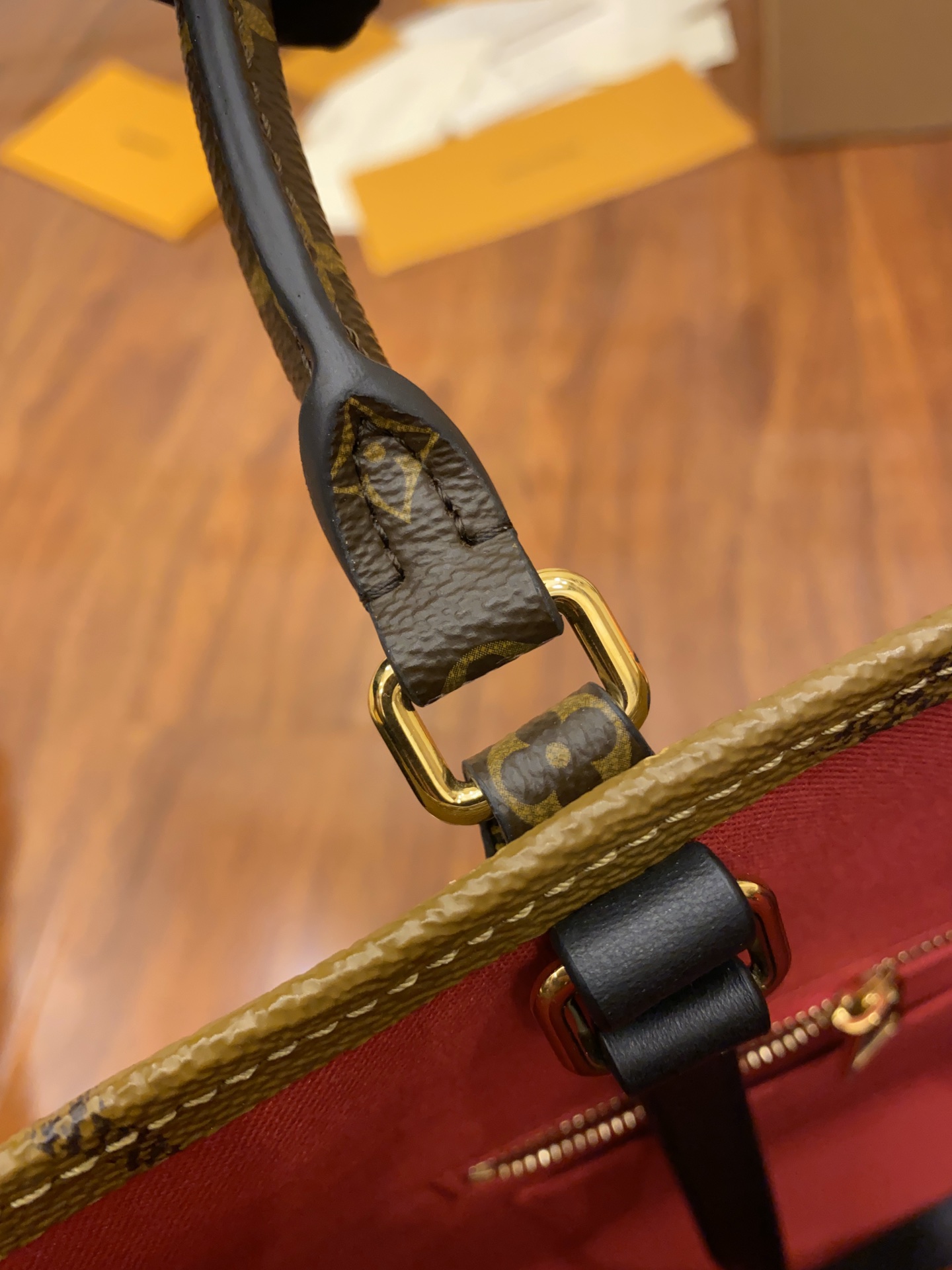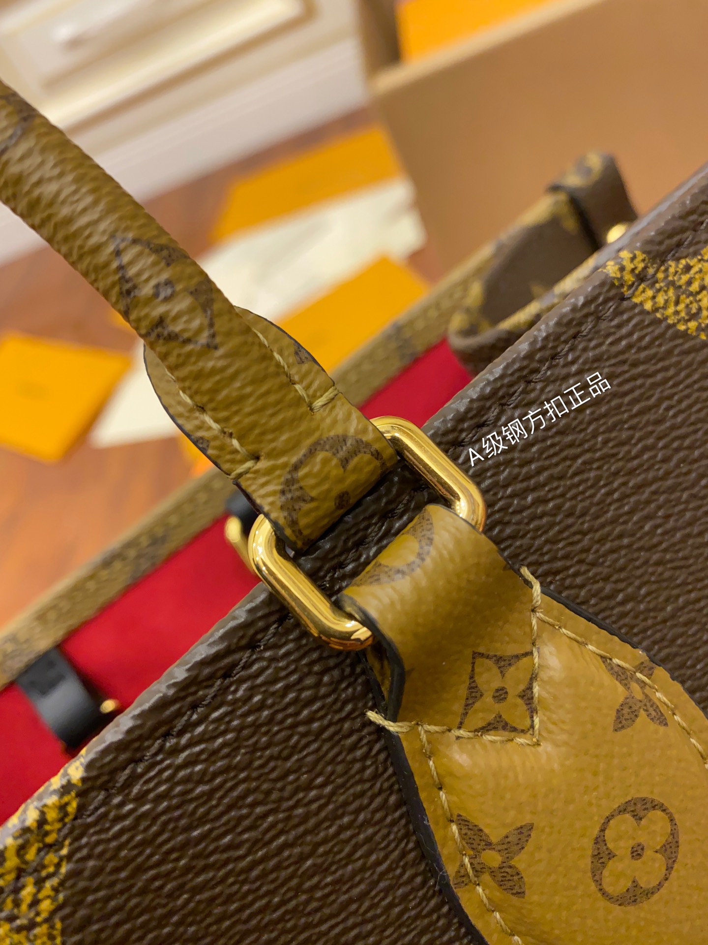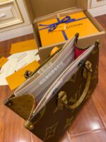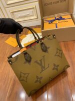 The name says it all: OnTheGo MM takes care of business or shopping, with plenty of room for a busy woman’s essentials. With Giant Monogram canvas on one side and Monogram Reverse on the other, it is virtually two bags in one. Twin Toron top handles and two shoulder straps offer several different carry styles, for extra versatility.