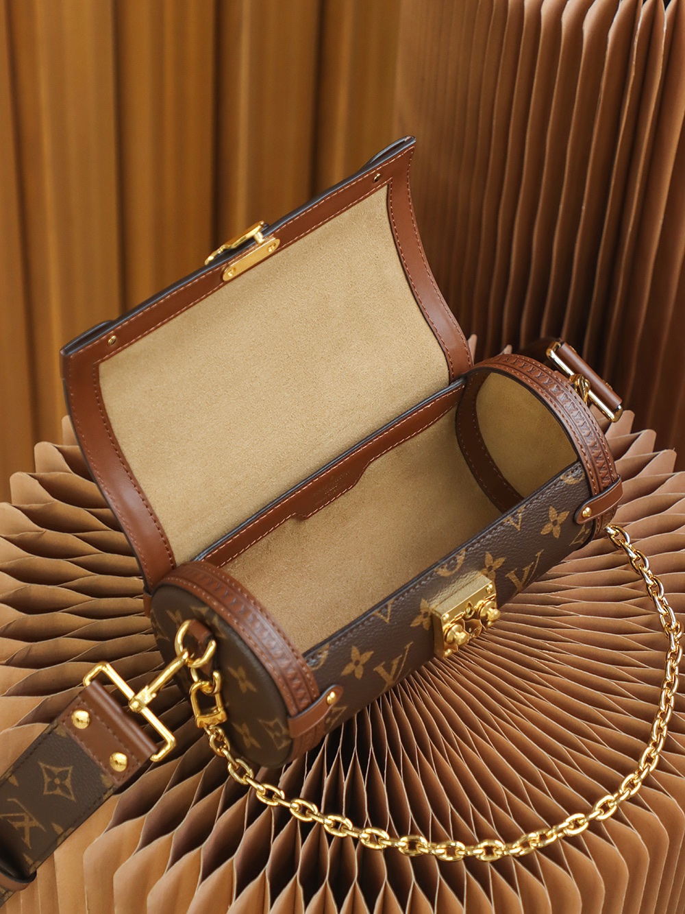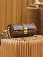 Nicolas Ghesquière introduces a new shape – both feminine and casual – inspired by Louis Vuitton’s archives: the Papillon Trunk handbag. The iconic Papillon duffle bag is transformed into a structured, geometric silhouette that is squarely on-trend. The S-lock, LV-embossed trimmings and studs pay homage to the House’s trunkmaking beginnings.