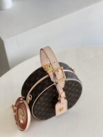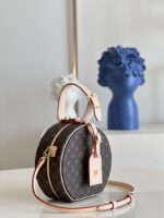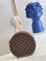 Louis Vuitton’s iconic hatbox is reimagined as an adorable day-to-evening bag. Small yet practical (it fits a smartphone), this exclusive piece comes in two versions: classic Monogram canvas with cowhide trim; or trendy Reverse Monogram with black calfskin.