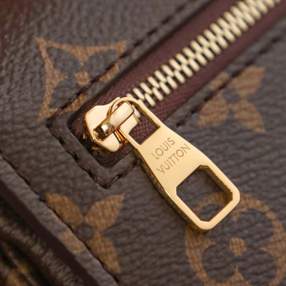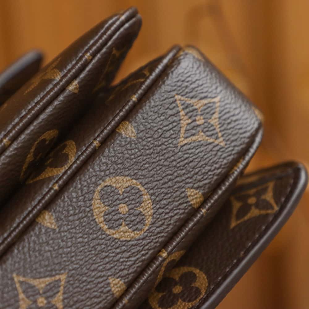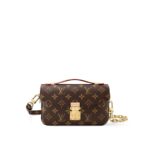 Made from Monogram canvas with natural cowhide-leather trim and the S-lock signature, the Pochette Métis East West bag combines emblematic House cues with new contemporary details like a gold-color chain for fashionable short-shoulder carry. Roomy enough to store a smartphone, it has three inside compartments, a zipped pocket inside, and another outside.