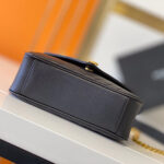 Antiqued-gold chain and black leather shoulder strap. black leather handle